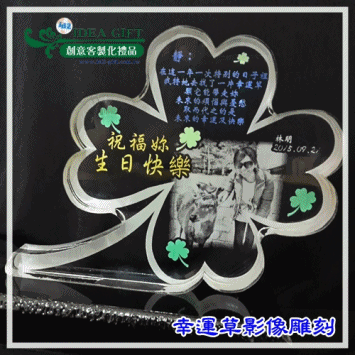 壓克力幸運草造型,將您相片雕刻在其中,就是要讓你幸運一輩子的開心禮物,祝你生日快樂!!